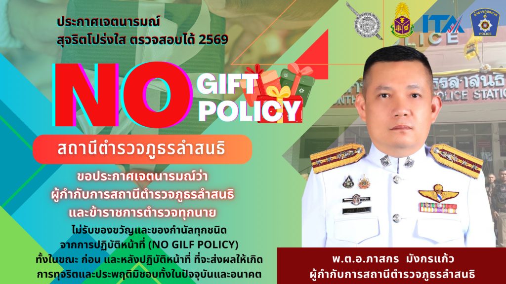 ประกาศเจตนารมณ์ที่จะไม่รับของขวัญหรือของกำนัลทุกชนิดจากการปฏิบัติหน้าที่ (No Gift Policy)