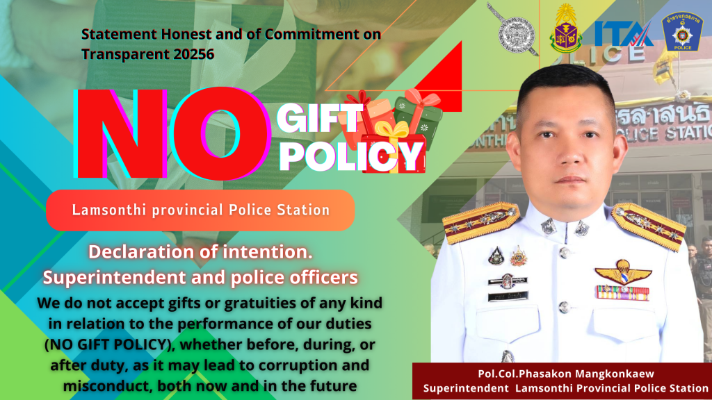 Announcement of Samrongnuea Police Station Subject: Anti-Bribery Policy (Anti-Bribery Policy) and not accepting gifts from Gifts or other benefits (No Gift Policy) from performing duties Fiscal Year 2026
